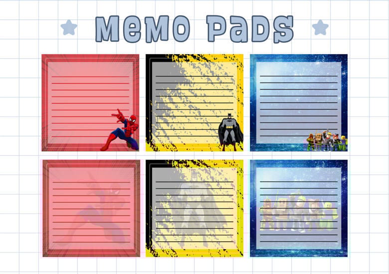 FREE PACK OF MEMO PAD WITH 60 DIFFERENT CHARACTER DESIGNS FOR BOYS AND GIRLS. ❤️